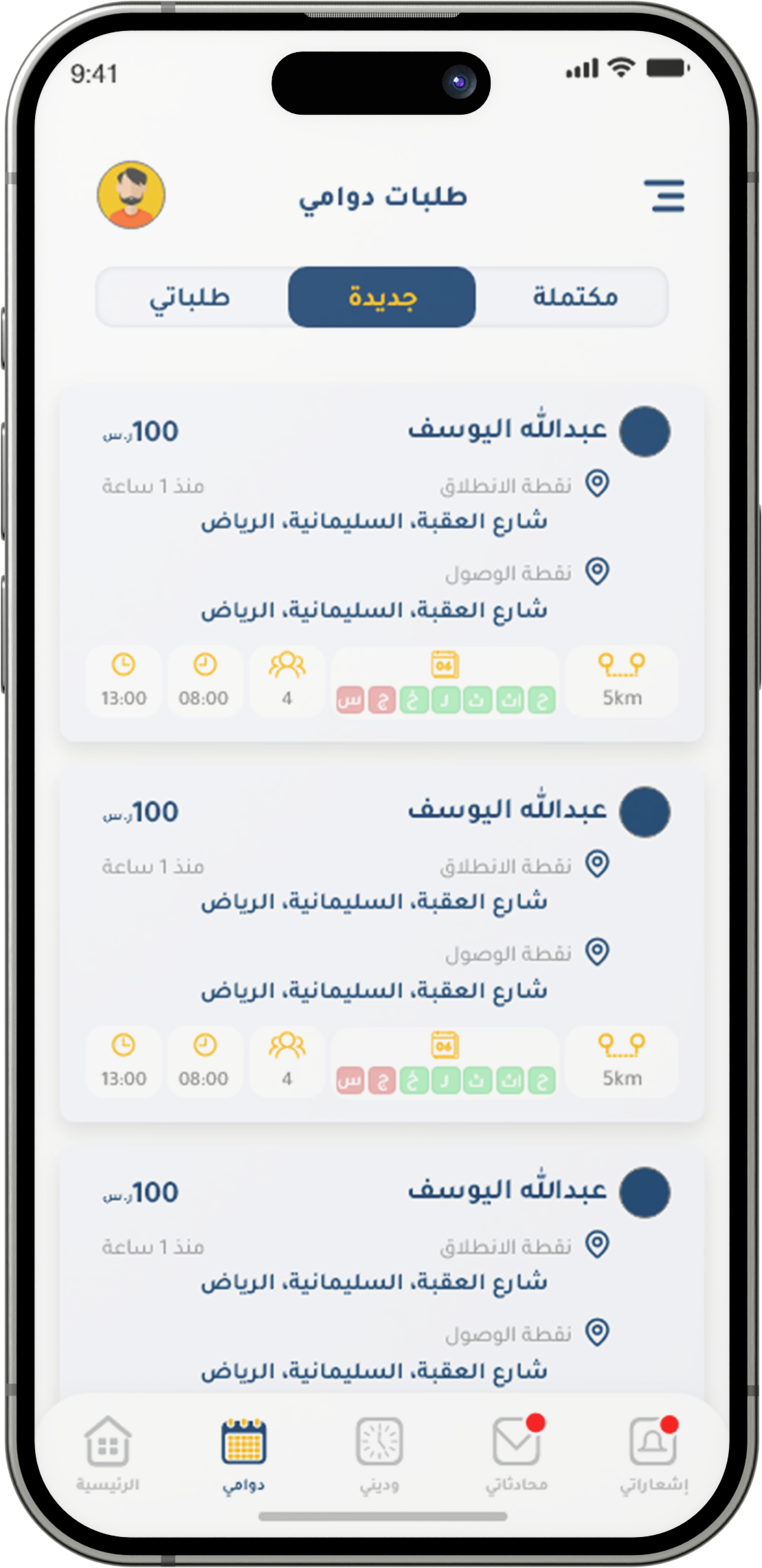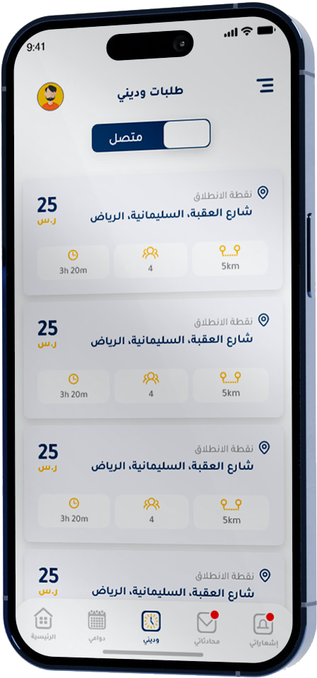 كابتن تطبيقنا يقدم خدمة التوصيل الشهري والمشاوير اليومية ، دوامي ممكن يكون دوامك اللي من خلاله تحقق اهدافك ، في دوامي نطلب منك ثلاث اشياء ( التزام - إتقان - جودة ) وانت لك عندنا ثلاث ( دخل يقدر مجهودك - حوافز - امتيازات ) ، كابتن خلي تطبيق دوامي يصير دوامك